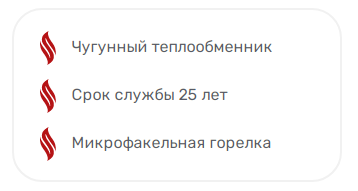 Высокая коррозионная стойкость чугуна обеспечивает длительный срок службы котла - 25 лет, что на 70% превышает срок эксплуатации котлов со стальным теплообменником;