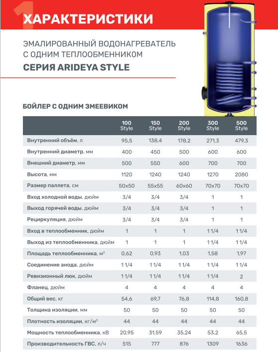 Лаборатория света и тепла » Отопительное оборудование » Водонагреватели » Косвенного нагрева » ARIDEYA STYLE 100