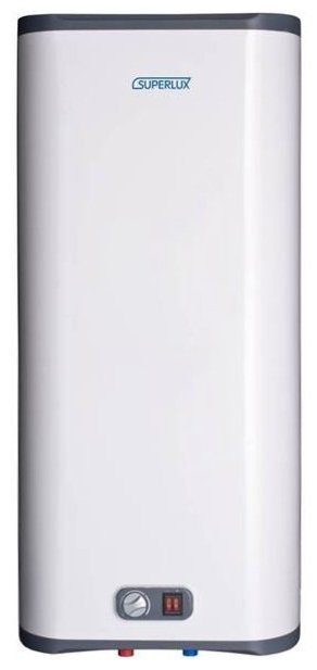 Вертикальный ЭВН, плоский бак из нержавеющей стали, объем воды 80л. С 2-мя нагревательными элементами: 1/1,5/2,5кВт. Время нагрева - 1 час 46 мин.