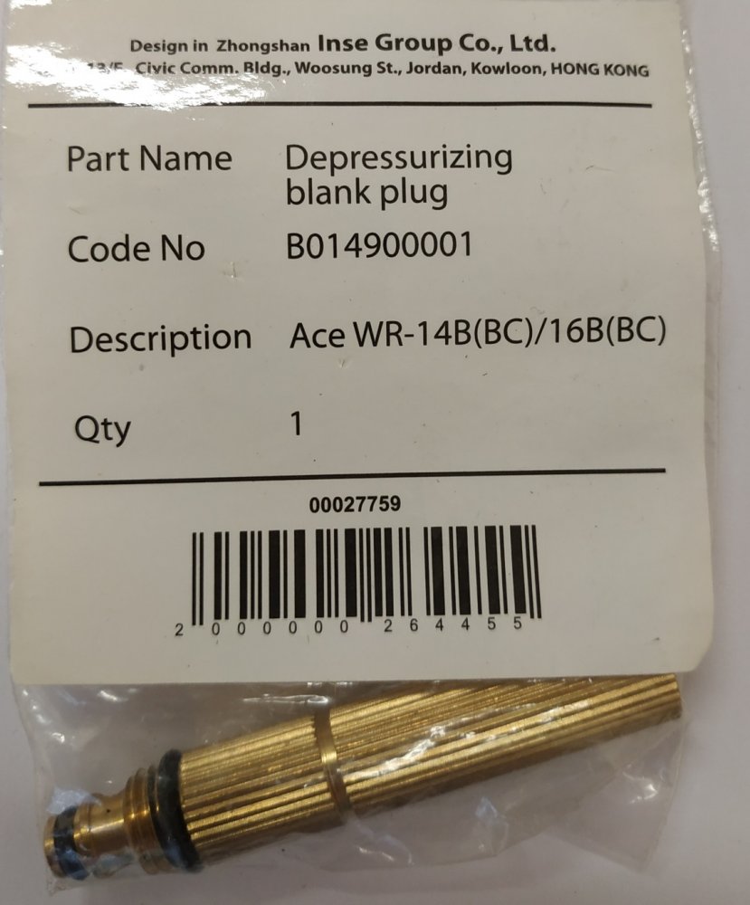 B014900001 Клапан-заглушка сброса давления и слива воды Ace WR-14/16B(BC) INSE