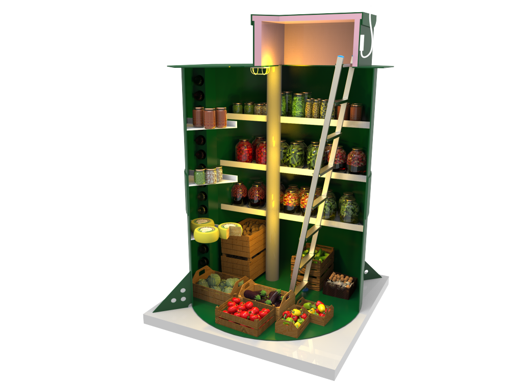 Погреб Келлари изготовлен из устойчивого к износу пластика, не подверженного гниению и окислению. Стенки и полки погреба не требуют специальной обработки.