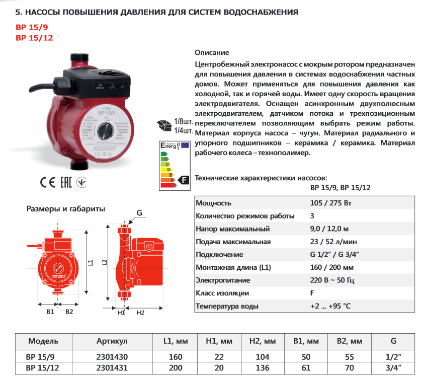 Центробежный электронасос с мокрым ротором предназначен для повышения давления в системах водоснабжения частных домов. Может применяться для повышения давления как холодной, так и горячей воды. Имеет одну скорость вращения электродвигателя.