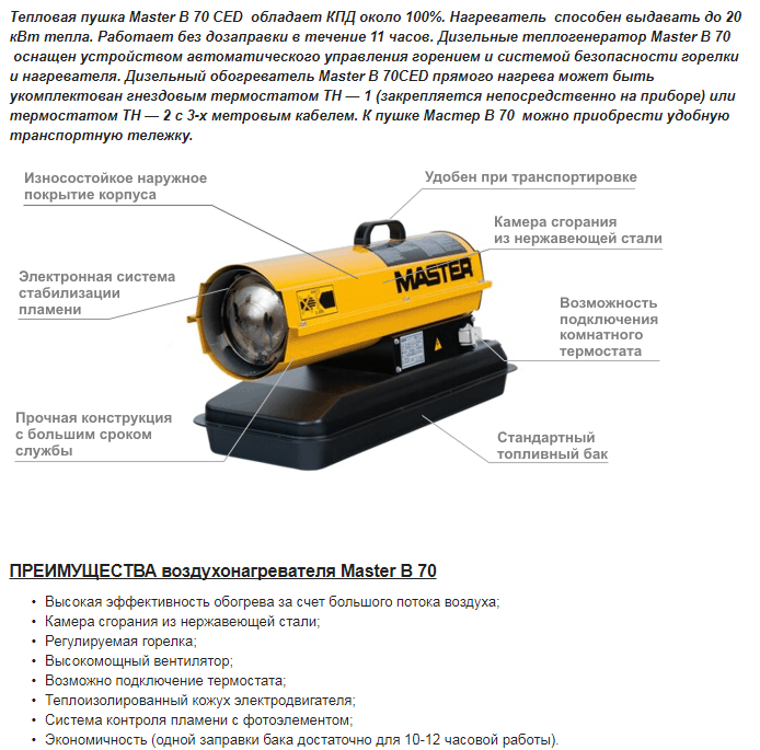 Дизельная тепловая пушка прямого нагрева Master B 70 CED