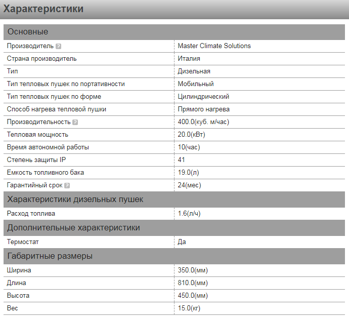 Мощность кВт. — 20 Поток м³/ч. — 400 Расход кг/ч. — 1.7 Температура на вых. ºС — 250 Вес кг. — 17.7