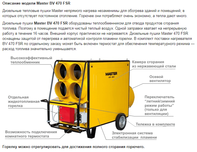 Дизельная тепловая пушка непрямого нагрева Master BV 470 FSR