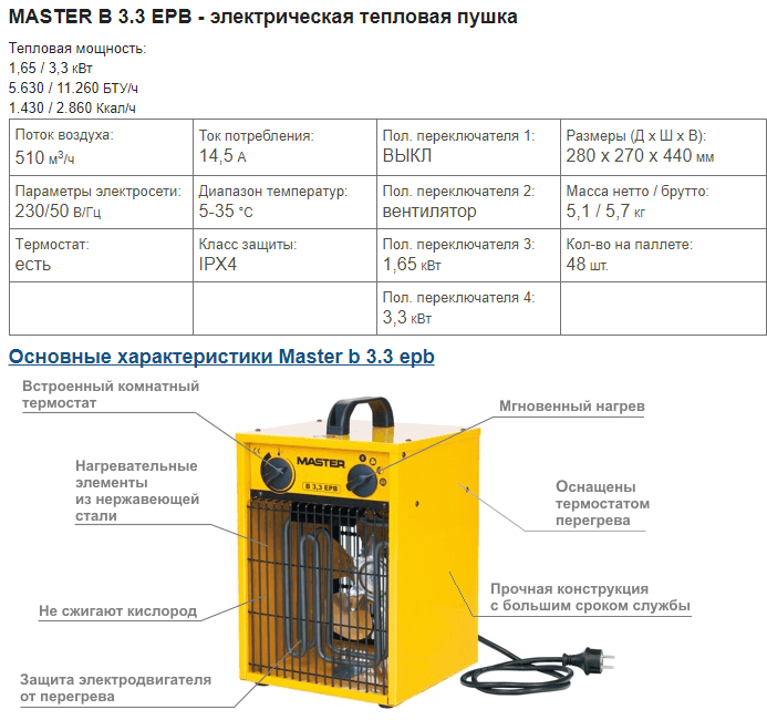 MASTER B 3,3EPB - электрическая тепловая пушка.