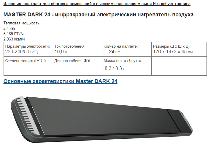 Инфракрасный нагреватель MASTER DARK 24. Идеально подходят для обогрева помещений с высоким содержанием пыли.