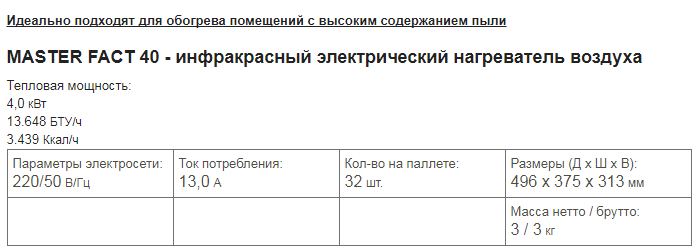 Инфракрасный нагреватель MASTER FACT 40