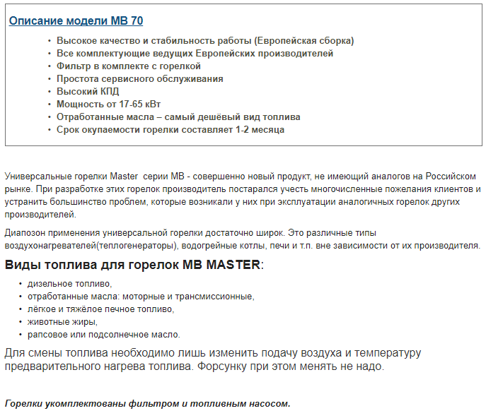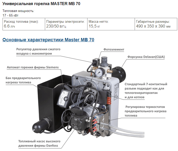 Лаборатория света и тепла » Отопительное оборудование » Тепловые пушки, горелки и нагреватели » Горелки на отработанном масле и универсальные » Универсальная горелка Master MB 70