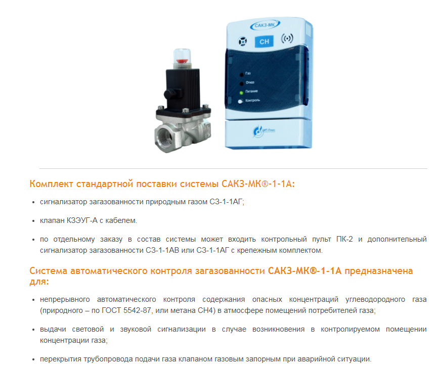 Система автоматического контроля загазованности МК-1-1А Дн 25 НД бытовая (СН), клапан КЗЭУГ-А.