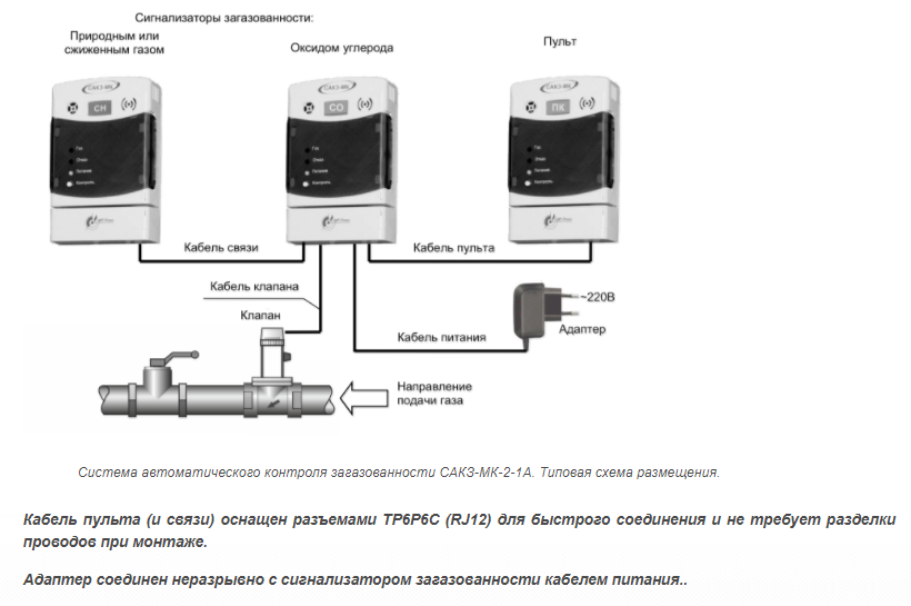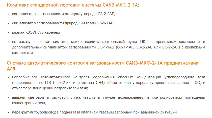 Система автоматического контроля загазованности МК-2-1А Дн 15 НД бытовая (СО+СН), клапан КЗЭУГ-А.