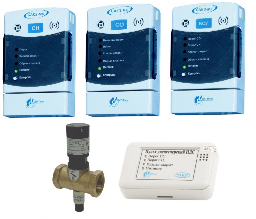 Система САКЗ-МК®-2 ПРОМЫШЛЕННАЯ состоит из сигнализаторов СЗ-1 (природный газ)/ СЗ-3 (сжиженный газ) и СЗ-2 (оксид углерода), блока БСУ, клапана КЗЭУГ или КЗГЭМ-У (DN = 15÷150, PN — до 0,4 МПа), соединительного кабеля с разъемами длиной 10 метров (по заказу возможна иная длина).