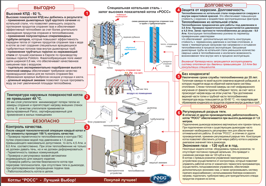 Преимущества АОГВ-котлов РОСС класса Люкс: