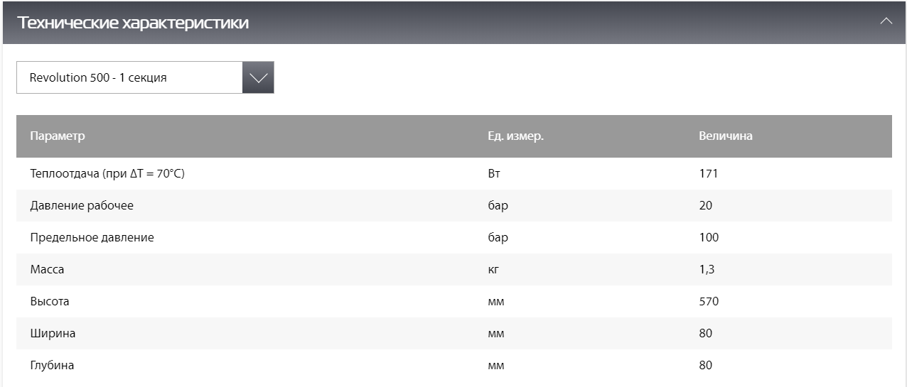 Модельный ряд представлен радиаторами 4, 6, 8, 10, 12 секций.