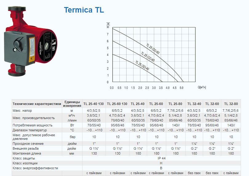 Лаборатория света и тепла » Отопительное оборудование » Насосы и станции » Циркуляционные насосы » Termica TL32/80