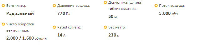 Мощность кВт. — 81 Поток м³/ч. — 3300 Расход кг/ч. — 6.8 Температура на вых. ºС — 105 Вес кг. — 126
